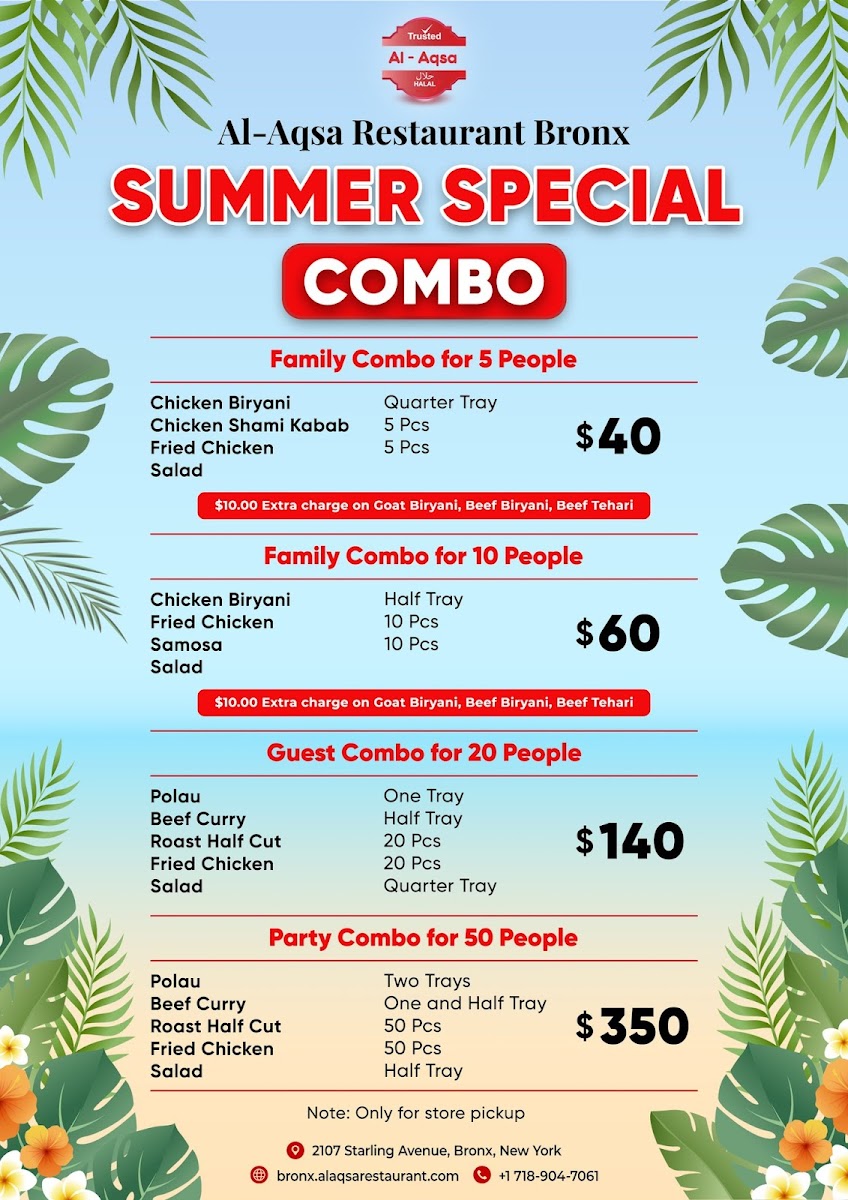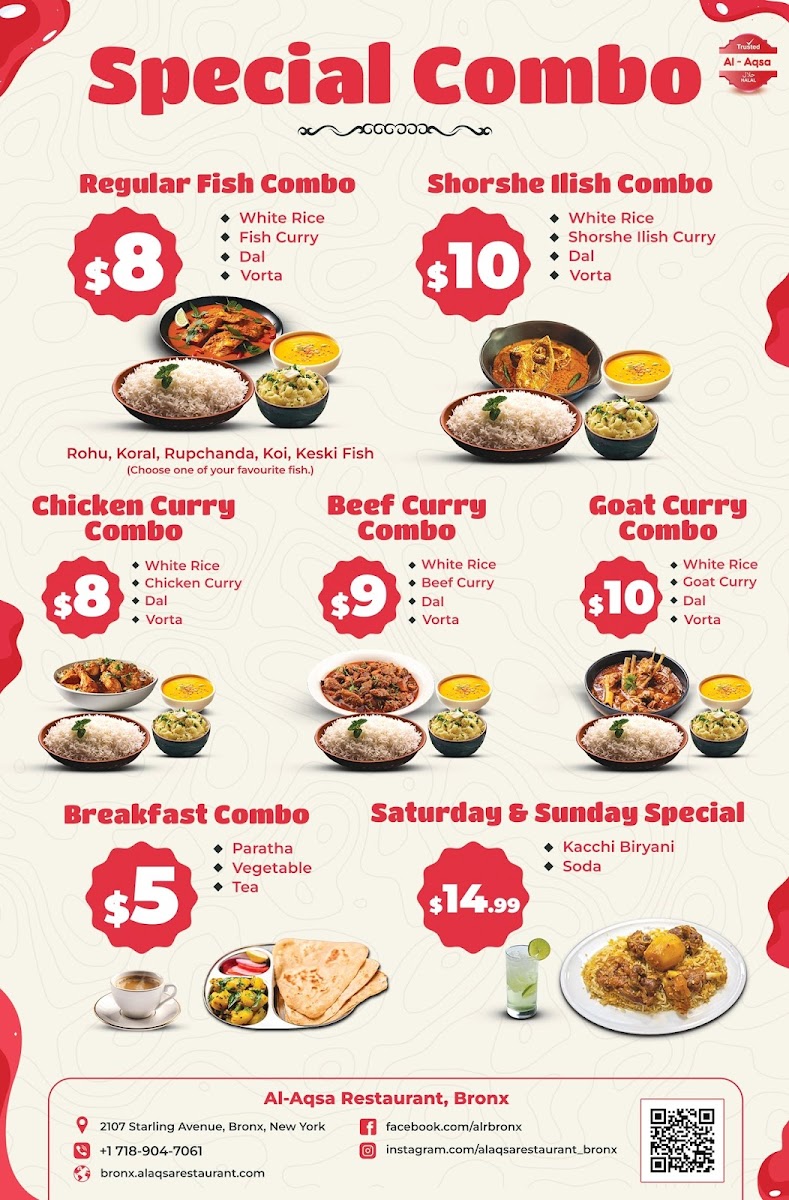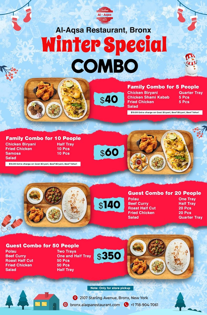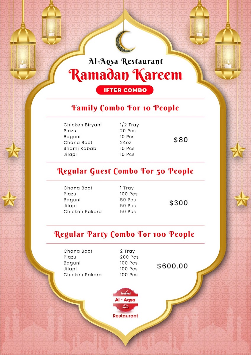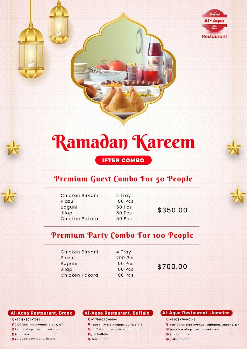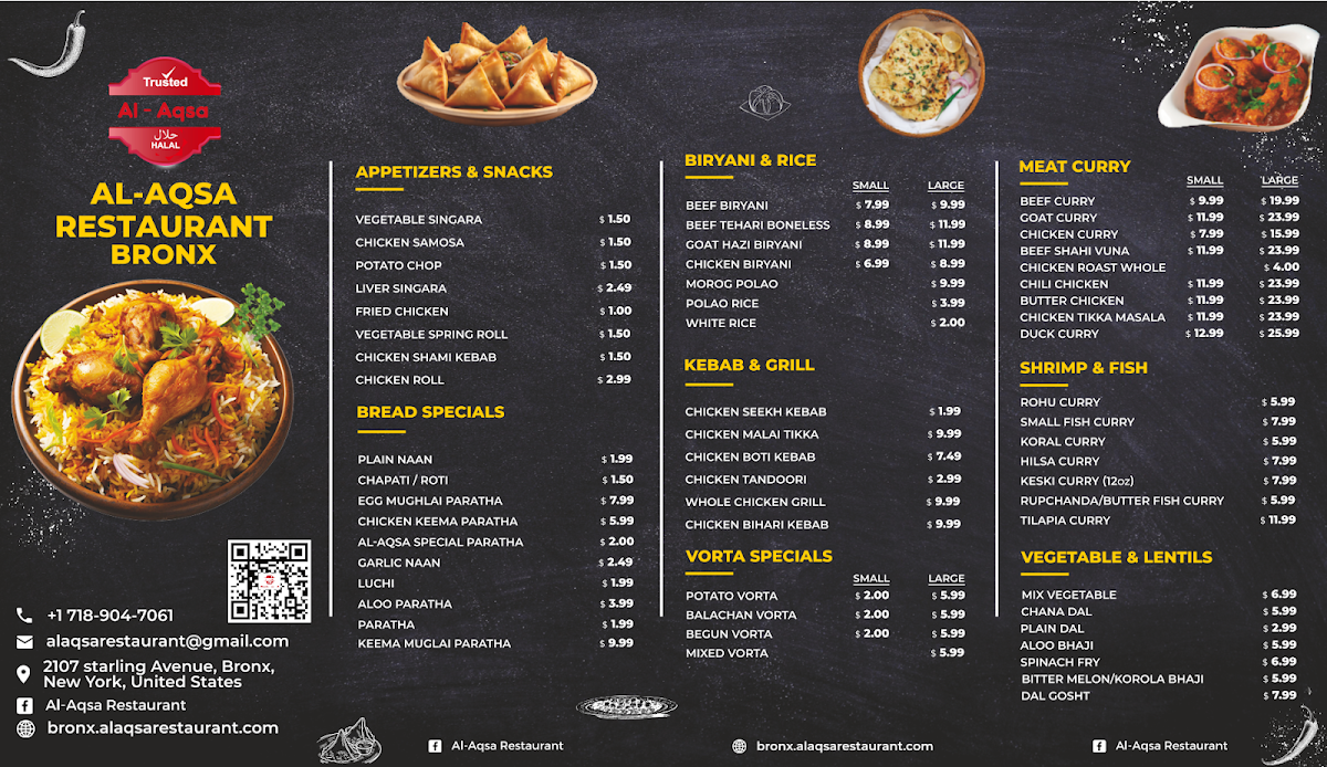 Looking for a delicious and authentic dining experience? The Al-Aqsa Restaurant | Halal Food In Bronx Menu offers an extensive selection of mouthwatering dishes that will transport your taste buds straight to the heart of the Middle East. Located at 2107 Starling Ave in the Bronx, this cozy spot specializes in freshly prepared halal meals, made with high-quality ingredients. Whether you're in the mood for tender kebabs, flavorful shawarma, or a hearty platter, there's something to satisfy every craving. The menu features a range of traditional dishes, all crafted with care and bursting with bold, aromatic spices. Perfect for a casual lunch or dinner, Al-Aqsa’s menu is designed to offer a taste of warmth, hospitality, and authentic flavors, making it a must-try for food lovers in the area.